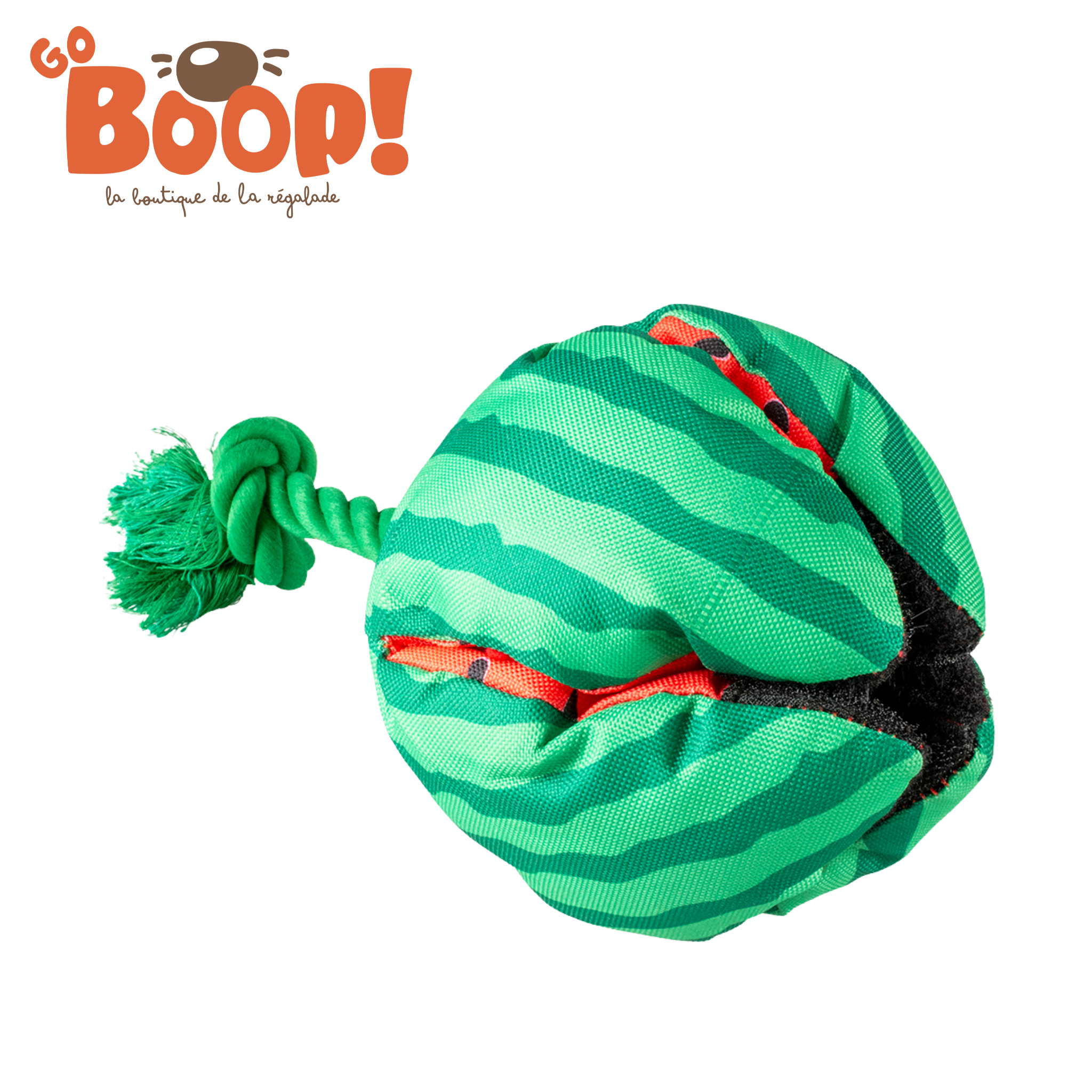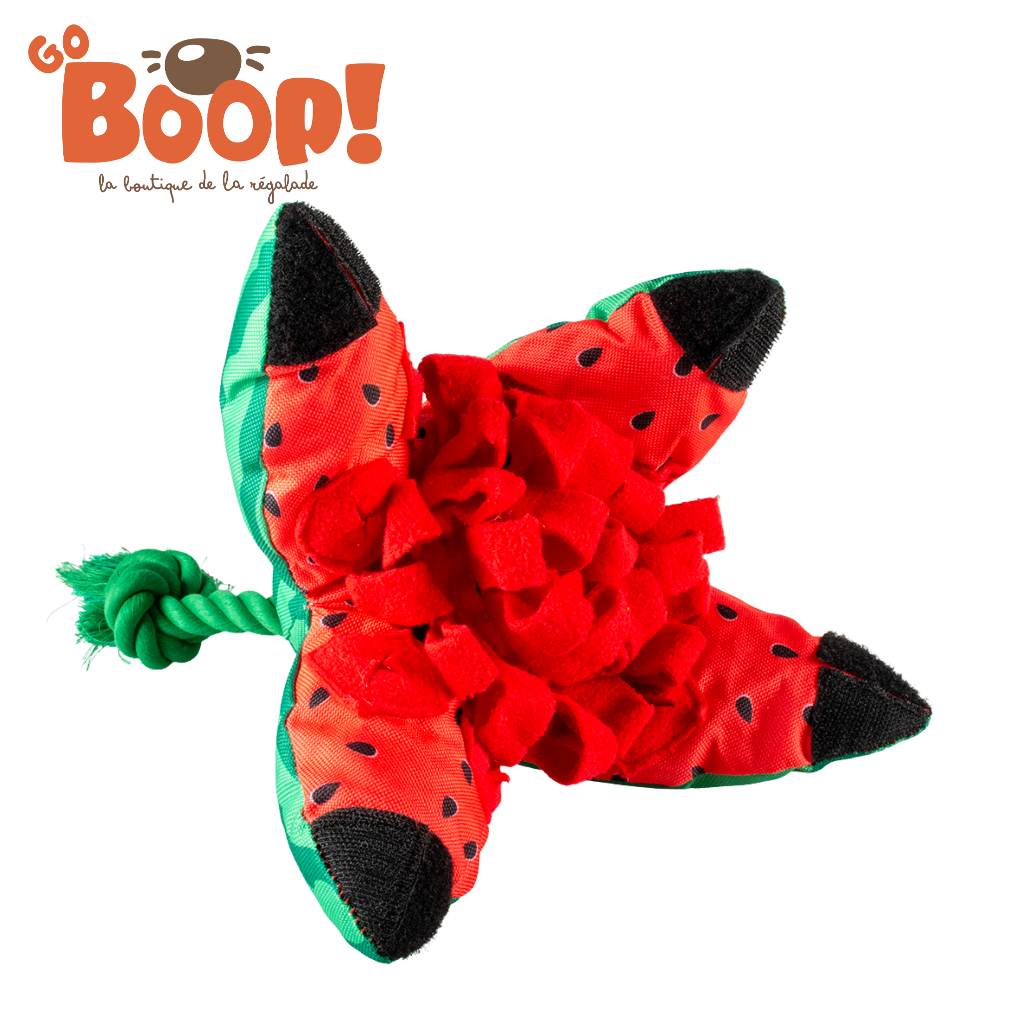 Capitaine PastĂšque dĂ©barque pour transformer chaque snack en chasse au trĂ©sor ! Tu rembourses les friandises dans ce jouet en forme de PastĂšque sucrĂ©e â ton chien va devoir flairer, fouiller, lĂ©cher⊠bref, sâactiver pour dĂ©crocher le goĂ»ter. Un super jouet pour stimuler lâesprit ET divertir les papilles.